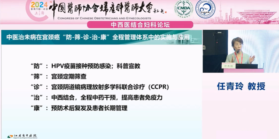 江蘇省中醫(yī)院任青玲教授就《中西醫(yī)結(jié)合宮頸癌防治一體化平臺(tái)建設(shè)》為題進(jìn)行報(bào)告: